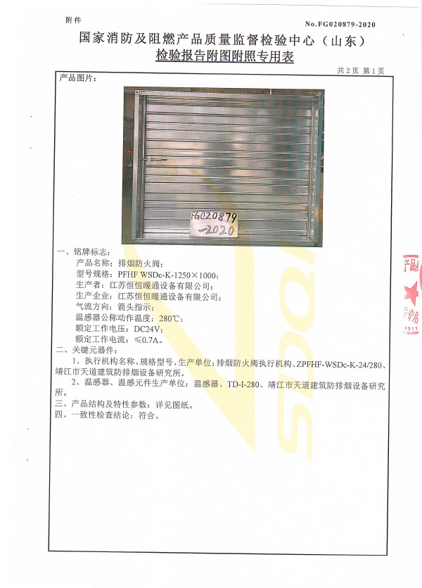 排煙防火閥認(rèn)證證書(shū)1250X1000